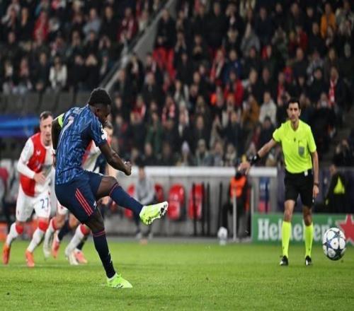欧冠联赛阶段第四轮,阿森纳客场对阵布拉格斯拉维亚,上半场萨卡主罚点球破门,成为欧冠改制后首位连续4场客场进...